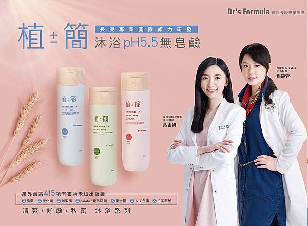 台塑生醫 Dr's Formula 植簡沐浴系列,pH5.5 無皂鹼的溫柔呵護,帶妳回歸簡單純淨的舒適圈。