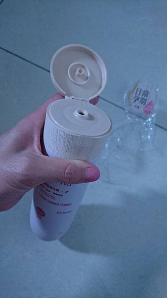 仿木紋的瓶蓋質感搭配上淡淡粉紅色的包裝